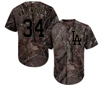Youth Majestic Los Angeles Dodgers #34 Fernando Valenzuela Authentic Camo Realtree Collection Flex Base MLB Jersey