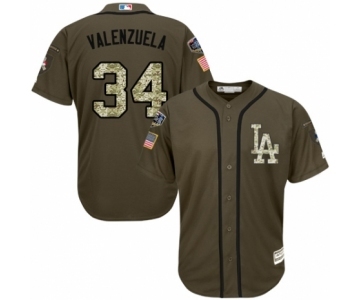 Youth Majestic Los Angeles Dodgers #34 Fernando Valenzuela Authentic Green Salute to Service 2018 World Series MLB Jersey