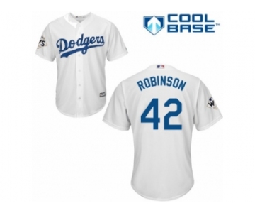 Youth Majestic Los Angeles Dodgers #42 Jackie Robinson Replica White Home 2017 World Series Bound Cool Base MLB Jersey
