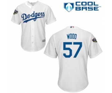 Your Position: Home>MLB Jerseys>Los Angeles Dodgers>youth>Youth Majestic Los Angeles Dodgers #57 Alex Wood Authentic White Home Cool Base 2018 World Series MLB Jersey
