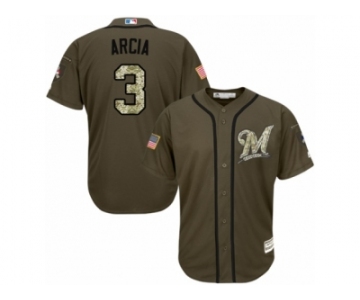 Youth Majestic Milwaukee Brewers #3 Orlando Arcia Replica Green Salute to Service MLB Jersey