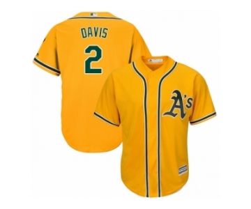 Youth Majestic Oakland Athletics #2 Khris Davis Replica Gold Alternate 2 Cool Base MLB Jersey