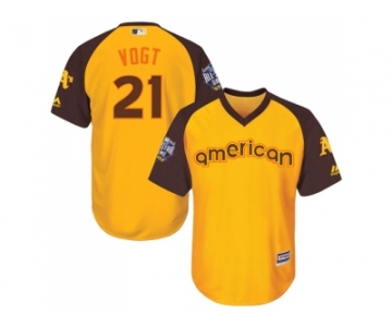 Youth Majestic Oakland Athletics #21 Stephen Vogt Authentic Yellow 2016 All-Star American League BP Cool Base MLB Jersey