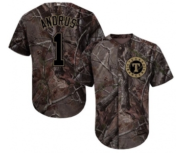 Youth Majestic Texas Rangers #1 Elvis Andrus Authentic Camo Realtree Collection Flex Base MLB Jersey