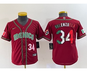 Youth Mexico Baseball #34 Fernando Valenzuela 2023 Red World Classic Stitched Jersey