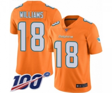 Youth Miami Dolphins #18 Preston Williams Limited Orange Rush Vapor Untouchable 100th Season Football Jersey