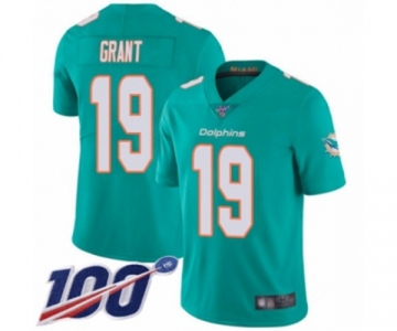 Youth Miami Dolphins #19 Jakeem Grant Aqua Green Team Color Vapor Untouchable Limited Player 100th Season Football Jersey