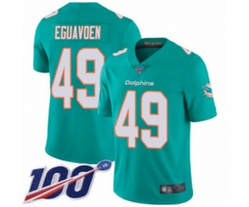 Youth Miami Dolphins #49 Sam Eguavoen Aqua Green Team Color Vapor Untouchable Limited Player 100th Season Football Jersey