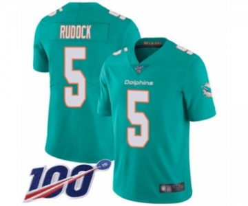 Youth Miami Dolphins #5 Jake Rudock Aqua Green Team Color Vapor Untouchable Limited Player 100th Season Football Jersey