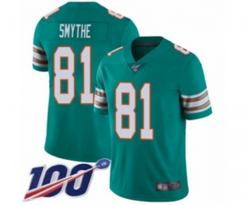 Youth Miami Dolphins #81 Durham Smythe Aqua Green Alternate Vapor Untouchable Limited Player 100th Season Football Jersey