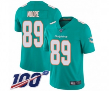 Youth Miami Dolphins #89 Nat Moore Aqua Green Team Color Vapor Untouchable Limited Player 100th Season Football Jersey