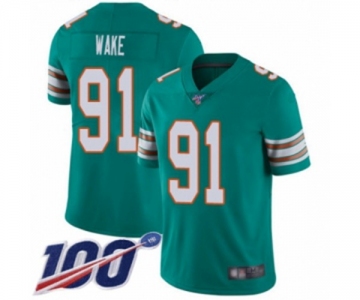 Youth Miami Dolphins #91 Cameron Wake Aqua Green Alternate Vapor Untouchable Limited Player 100th Season Football Jersey