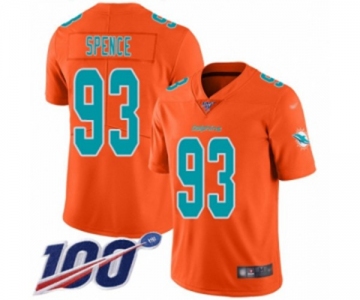 Youth Miami Dolphins #93 Akeem Spence Limited Orange Inverted Legend 100th Season Football Jersey
