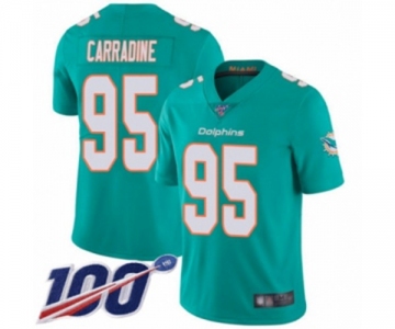 Youth Miami Dolphins #95 Tank Carradine Aqua Green Team Color Vapor Untouchable Limited Player 100th Season Football Jersey
