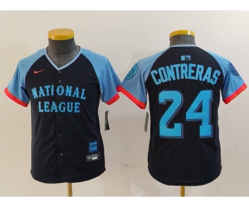 Youth Milwaukee Brewers #24 William Contreras Number Navy 2024 All Star Limited Stitched Jersey