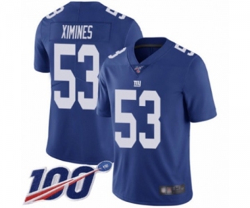 Youth New York Giants #53 Oshane Ximines Royal Blue Team Color Vapor Untouchable Limited Player 100th Season Football Jersey