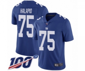 Youth New York Giants #75 Jon Halapio Royal Blue Team Color Vapor Untouchable Limited Player 100th Season Football Jersey