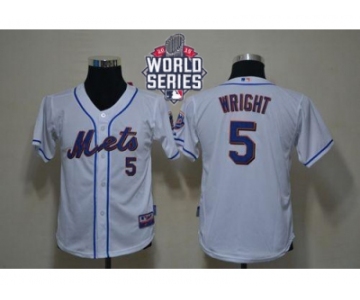 Youth New York Mets #5 David Wright White Cool Base W 2015 World Series Patch Stitched MLB Jersey