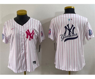 Youth New York Yankees Team Big Logo White Pink Pinstripe Limited Stitched Baseball Jerseys