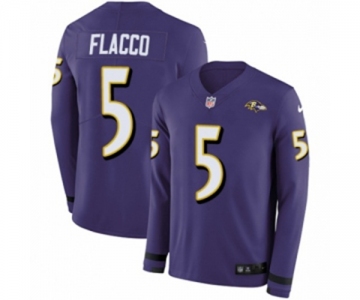 Youth Nike Baltimore Ravens #5 Joe Flacco Limited Purple Therma Long Sleeve NFL Jersey