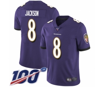 Youth Nike Baltimore Ravens #8 Lamar Jackson Purple Team Color Vapor Untouchable Limited Player 100th Season NFL Jersey