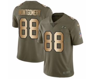 Youth Nike Baltimore Ravens #88 Ty Montgomery Limited Olive Gold Salute to Service NFL Jersey