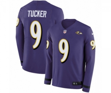 Youth Nike Baltimore Ravens #9 Justin Tucker Limited Purple Therma Long Sleeve NFL Jersey