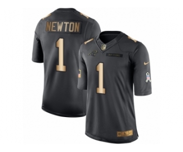 Youth Nike Carolina Panthers #1 Cam Newton Limited Black Gold Salute to Service NFL Jersey
