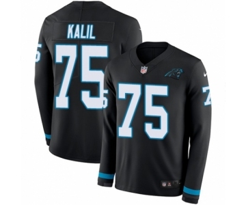 Youth Nike Carolina Panthers #75 Matt Kalil Limited Black Therma Long Sleeve NFL Jersey