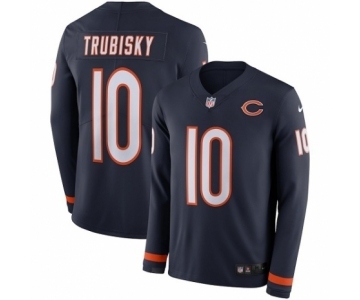 Youth Nike Chicago Bears #10 Mitchell Trubisky Limited Navy Blue Therma Long Sleeve NFL Jersey