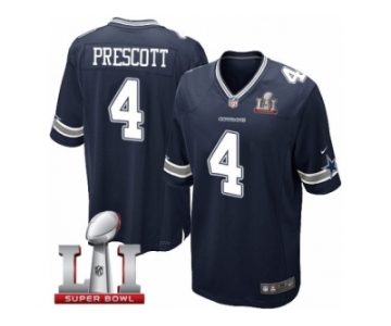 Youth Nike Dallas Cowboys #4 Dak Prescott Elite Navy Blue Team Color Super Bowl LI NFL Jersey