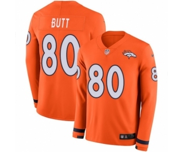 Youth Nike Denver Broncos #80 Jake Butt Limited Orange Therma Long Sleeve NFL Jersey