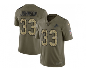 Youth Nike Detroit Lions #33 Kerryon Johnson Olive Camo Stitched NFL Limited 2017 Salute to Service Jersey