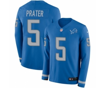 Youth Nike Detroit Lions #5 Matt Prater Limited Blue Therma Long Sleeve NFL Jersey