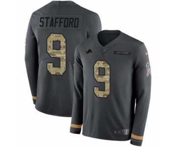 Youth Nike Detroit Lions #9 Matthew Stafford Limited Black Salute to Service Therma Long Sleeve NFL Jersey