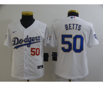Youth Nike Los Angeles Dodgers #50 Mookie Betts White Series Champions Jersey