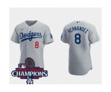 Youth Nike Los Angeles Dodgers Enrique Hernandez #8 Gray Flex Base 2024 World Series Champions Stitched MLB Jersey