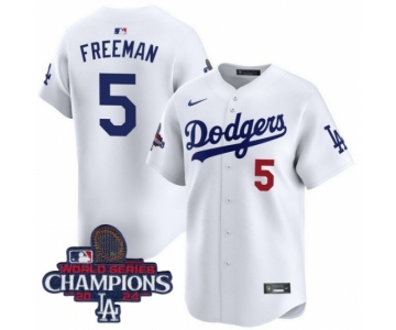 Youth Nike Los Angeles Dodgers Freddie Freeman #5 White Flex Base 2024 World Series Champions Stitched MLB Jersey