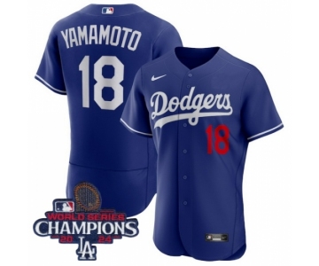 Youth Nike Los Angeles Dodgers Yoshinobu Yamamoto #18 Blue Flex Base 2024 World Series Champions Stitched MLB Jersey
