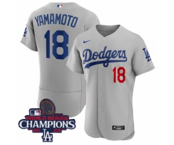 Your Position: Home>NIKE MLB Jerseys>2024 World Series Champions>Youth>Youth Nike Los Angeles Dodgers Yoshinobu Yamamoto #18 Gray Flex Base 2024 World Series Champions Stitched MLB Jersey