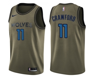 Youth Nike Minnesota Timberwolves #11 Jamal Crawford Swingman Green Salute to Service NBA Jersey