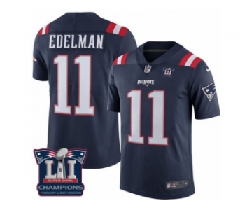 Youth Nike New England Patriots #11 Julian Edelman Limited Navy Blue Rush Super Bowl LI Champions NFL Jersey