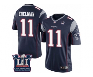 Youth Nike New England Patriots #11 Julian Edelman Navy Blue Team Color Super Bowl LI Champions NFL Jersey