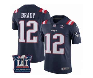 Youth Nike New England Patriots #12 Tom Brady Limited Navy Blue Rush Super Bowl LI Champions NFL Jersey