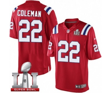 Youth Nike New England Patriots #22 Justin Coleman Elite Red Alternate Super Bowl LI 51 NFL Jersey