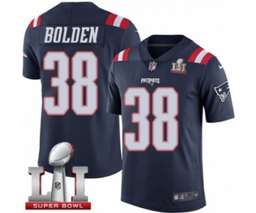 Your Position: Home>NIKE NFL Jerseys>Nike New England Patriots>2017 Super Bowl LI 51 NFL Jersey>Youth Super Bowl LI 51 NFL Jersey>Youth Nike New England Patriots #38 Brandon Bolden Limited Navy Blue Rush Super Bowl LI 51 NFL Jersey
