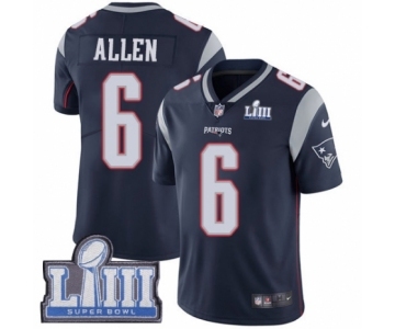 Youth Nike New England Patriots #6 Ryan Allen Navy Blue Team Color Vapor Untouchable Limited Player Super Bowl LIII Bound NFL Jersey