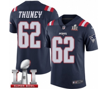 Youth Nike New England Patriots #62 Joe Thuney Limited Navy Blue Rush Super Bowl LI 51 NFL Jersey