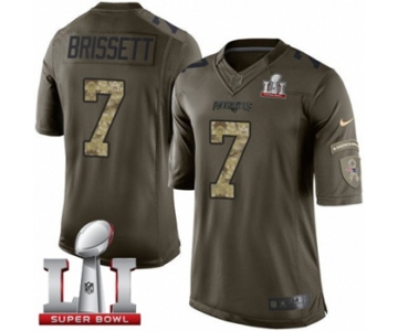 Youth Nike New England Patriots #7 Jacoby Brissett Limited Green Salute to Service Super Bowl LI 51 NFL Jersey