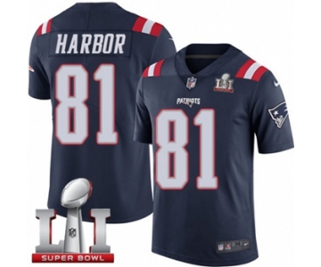 Your Position: Home>NIKE NFL Jerseys>Nike New England Patriots>2017 Super Bowl LI 51 NFL Jersey>Youth Super Bowl LI 51 NFL Jersey>Youth Nike New England Patriots #81 Clay Harbor Limited Navy Blue Rush Super Bowl LI 51 NFL Jersey